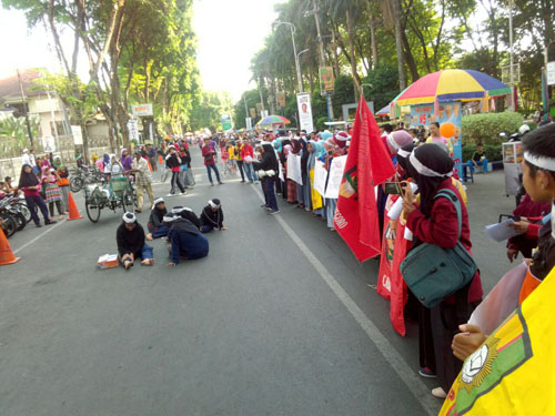 Aksi tersebut dilaksanakan dengan berjalan mengitari alun-alun dan